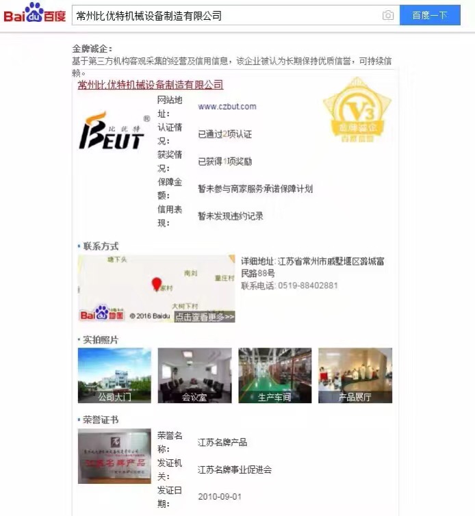 除了中國機床商務網之外,為了擴大影響范圍,常州比優特還在多個行業相關網站進行注冊宣傳,如阿里巴巴、中國數控機床網、百度等。現在,打開網頁,輸入“常州比優特機械設備制造有限公司”,企業相關信息就可以被網友輕松獲取。而多平臺的布局也讓常州比優特網羅了大批有不同平臺偏好的客戶。“網銷只是手段,誠信經營才是硬道理”,對于常州比優特,網絡營銷可以讓客戶簡單、直觀、即時地了解公司和產品狀況,但企業發展還得靠自身實力。正是有這樣的認識,常州比優特逐步贏得了客戶和平臺的認可,先后獲得“百度信譽金牌誠企”稱號、中國機床商務網“頂級會員企業”認證等,成為行業內極具競爭力的創新型企業。