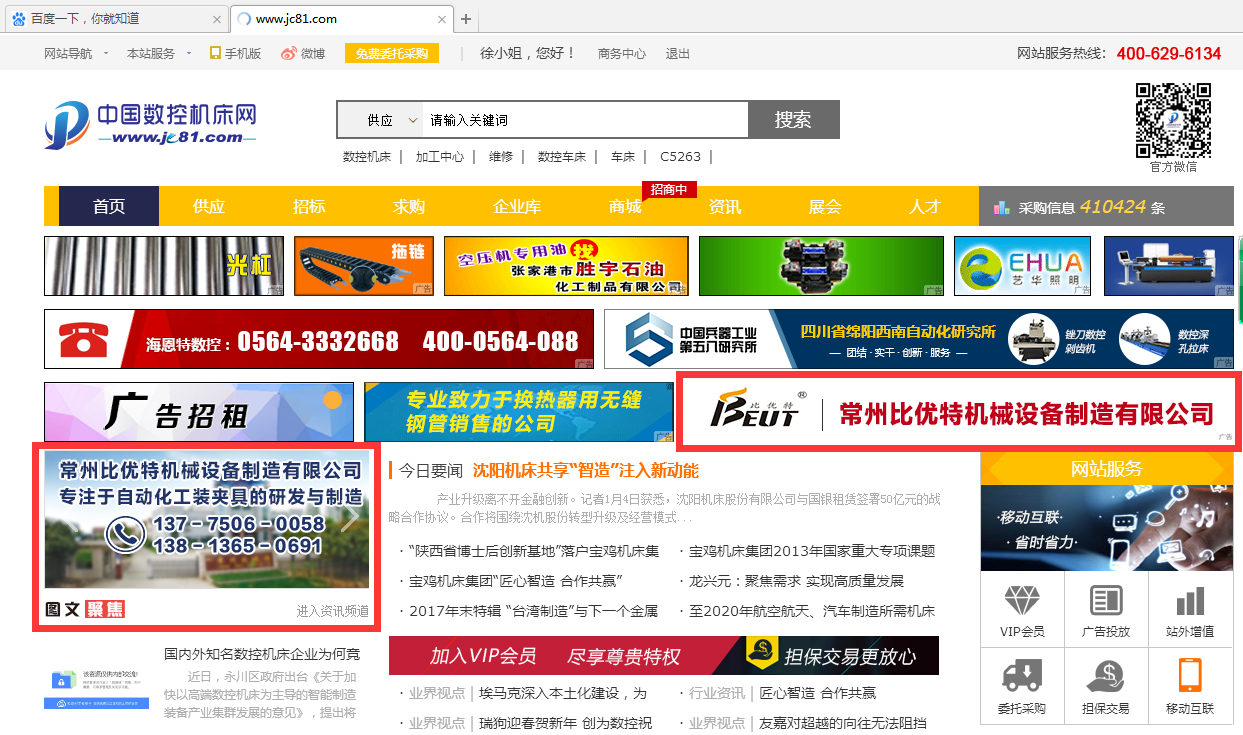 既然決定在網絡上尋發展,常州比優特當然不會錯過業內有影響力的平臺。常州比優特先后建立起自己的和自媒體平臺,并把目光投向了擁有多年營銷、推廣經驗的行業展示交易網絡平臺——中國機床商務網。對口的網站、龐大的行業用戶為常州比優特打開了市場,網絡訂單的不斷涌入也堅定了常州比優特在網銷道路上發展的決心。在把中國機床商務網作為自己的重點發展平臺同時,常州比優特又有目的的在其他行業相關平臺進行推廣宣傳。“重點突出、多點開花”,這套網絡營銷組合拳讓常州比優特的網絡營銷更上一層樓,在2017年接連取得銷售佳績。